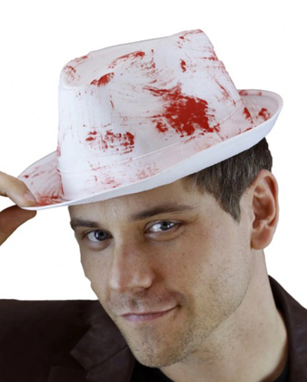 Unser blutiger Hut für Herren ist das perfekte Halloween Kostümaccessoire. Der weiße Herrenhut ist voller mit Blutspritzer. Als hättest du mit einer Axt oder einer Machete herumgewütet. Oder jemand anderes und du standst nur zufällig daneben. Das unschuldige Weiß ist jedenfalls dahin. Passend zu unserem Halloween Kostümhut empfehlen wir ein Scream Messer mit Blut als weiteres fieses Killer Detail.