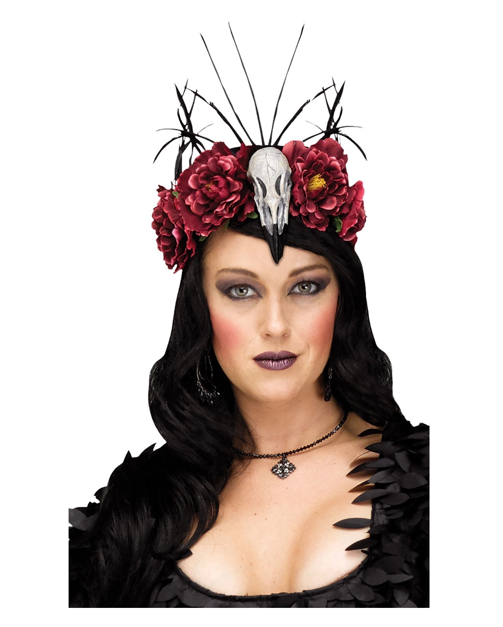 Unser Kopfschmuck Raben Königin ist ein extravaganter Halloween Kopfschmuck mit Blumen. Ob du dich als Schwarze Fee, oder dunkle Königin kostümierst – mit dem Blumenkranz mit Raben Skelettkopf wirst du deine Horror Verkleidung um einiges aufwerten. Auch zu Fasching machst du mit der Blumenkrone mit Rabenschädel einiges her und wirst für viel Aufsehen sorgen. Der Blumenkranz Kopfschmuck ist ein einzigartiges Kostümzubehör mit gruseligen Details. Lege mit der passenden Perücke und einem prachtvollen Kostüm einen besonders skurrilen Auftritt hin.