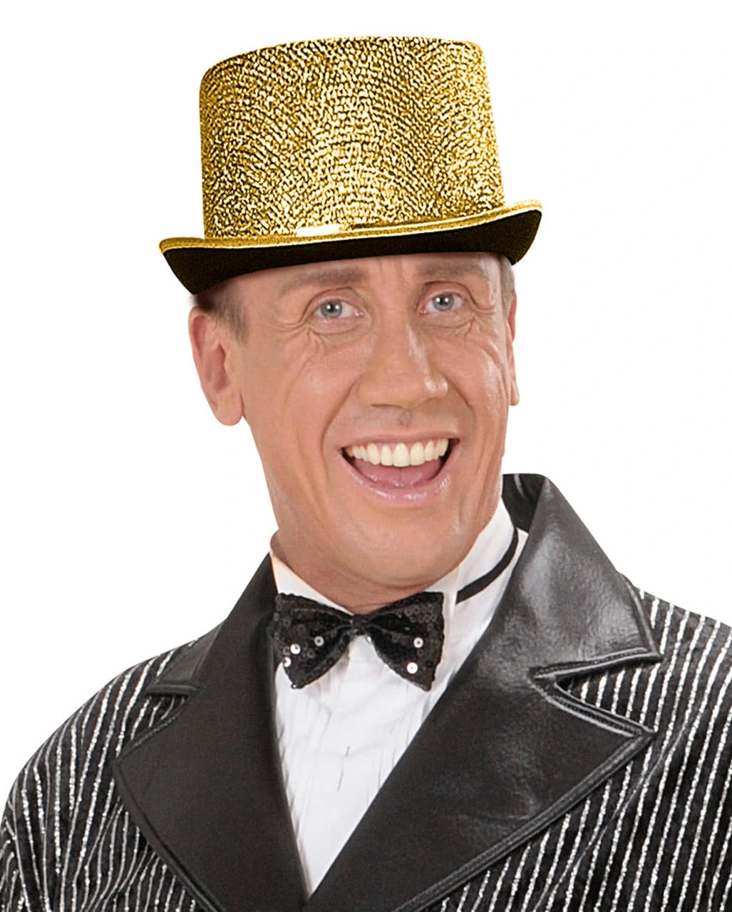 Der goldene Lurex Zylinder ist ein äußerst beliebtes Kostümzubehör für Cabarett und Musicals. In Revue-Theater und Tanz Shows findet diese glamouröse Kopbedeckung ihre Verwendung. Wer kennt nicht A Chorus Line, bei der alle Tänzer einen goldenen Zylinder tragen! So verwundert es auch nicht dass Karnevals Tanzgarden gerne auf dieses edle Kostümzubehör zurückgreifen. Der stabile Zylinder ist mit goldenem Lurex Stoff überzogen und hat ein goldenes Hutband.