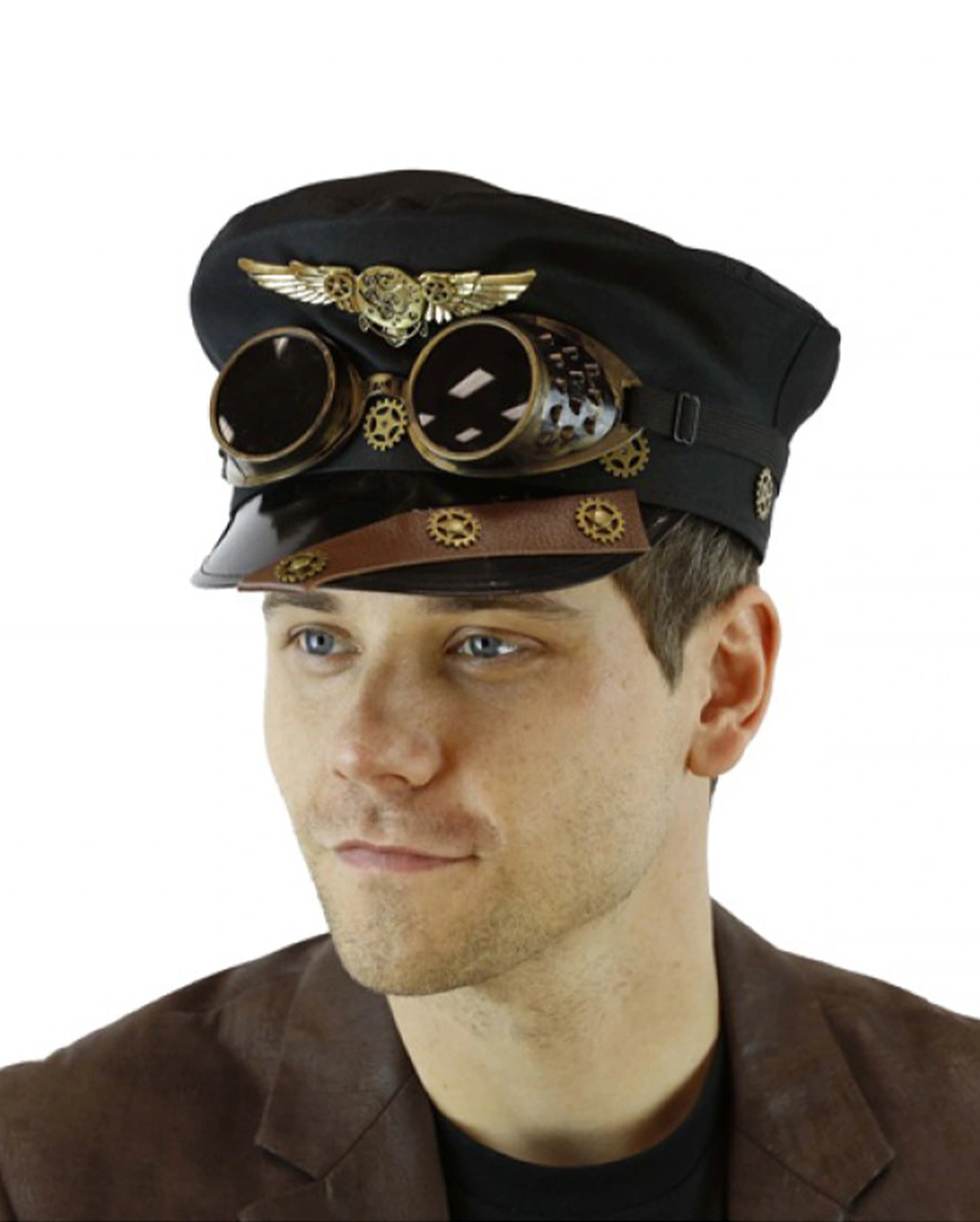 Pilotenhut mit goldenen Applikationen als Steampunk Kostüm Accessoire