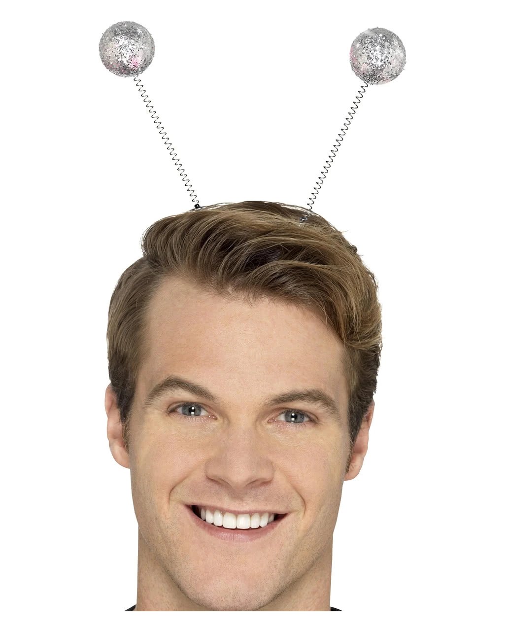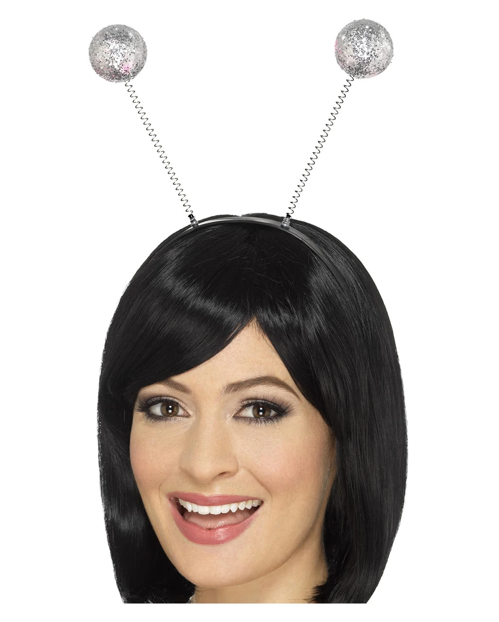 Verwende unseren silbernen Bommel-Haarreif als witzige Ergänzung zu deinem Kostüm! Der Kopfschmuck komplettiert Alien Verkleidungen, Disco Outfits, Marienkäfer Kostüme und passt auch wunderbar als schnelles Accessoire für Weihnachts- und Silvesterpartys!