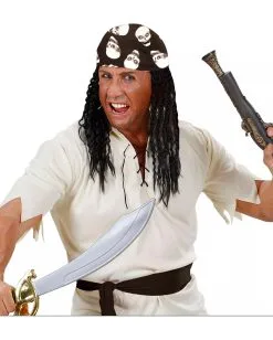 Das schwarze Skull Bandana Kopftuch, über und über mit Totenschädeln bedruckt ist das optimale Kostümzubehör für Piraten. Das Piraten Bandana lässt sich prima für den verwegenen Seeräuber als Kopftuch verwenden, aber auch für Ganoven und eine abgefahrenen Rocker als Kostüm Accessoire einsetzen.