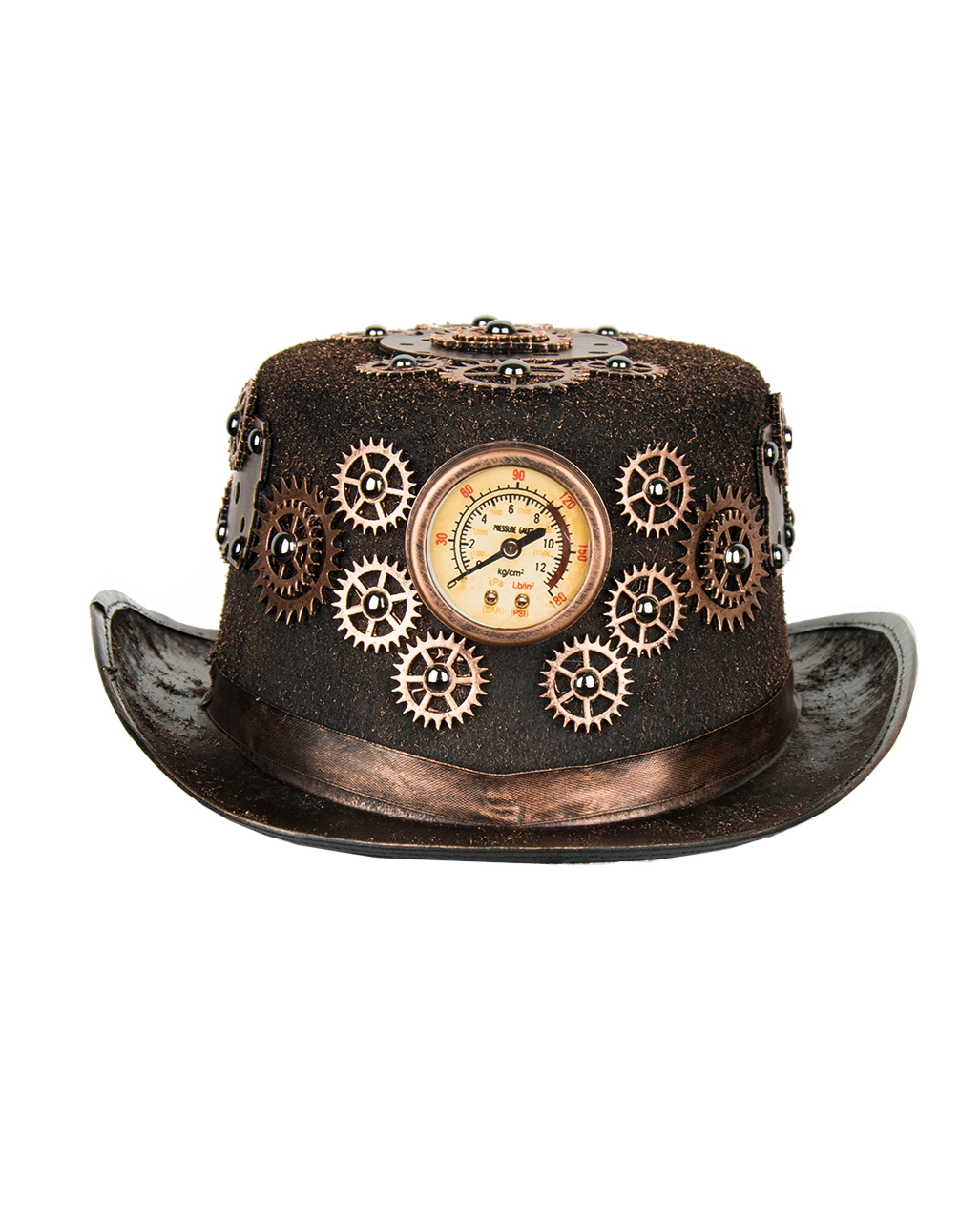 Auch als Ergänzung für fantasievoll düstere Halloween Kostüme ist der Steampunk Kostüm Hut mit Zahnrädern ein auffälliges Zubehör. Extravagant und stillvoll kleidet dieser besondere Halloween-Hut aus braunem Filz den Kopf eines besonderen Gentlemen. Die Zahnräder und der in der Mitte liegende Tiefenmesser verleiht dem coolen Steampunk-Gimmick das gewisse Extra. Der Gummizug sorgt für perfekten Halt. Damit bist du der Hingucker schlechthin. Vor allem, wenn Du Deinen Auftritt noch mit weiteren lässigen Steampunk Accessoires wie der Pilotenbrille Steampunk mit Bügel.